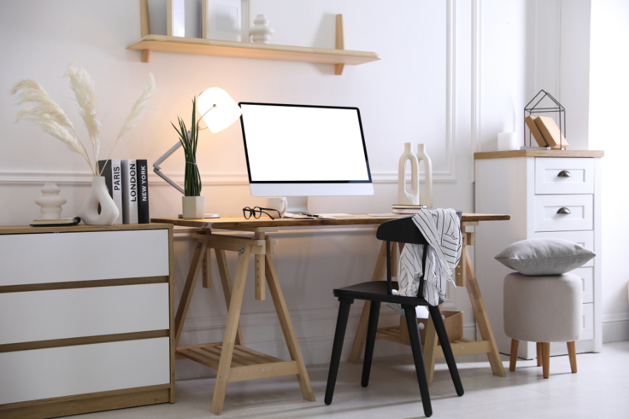 書類や本、文房具などが散らばっていると、集中力が低下します。仕事効率を高めるために、デスクの近くに書類を整理できる棚や引き出しを設け、必要なものがすぐに取り出せるように工夫しましょう。