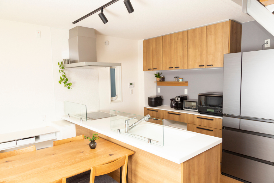 料理中やリビングでくつろいでいるときでも、お互いの顔が見えるため、自然と会話が生まれます。さらに、窓からの光が部屋の奥まで届きやすくなり、風通しも向上するため、明るく快適な住環境を手に入れることができます。